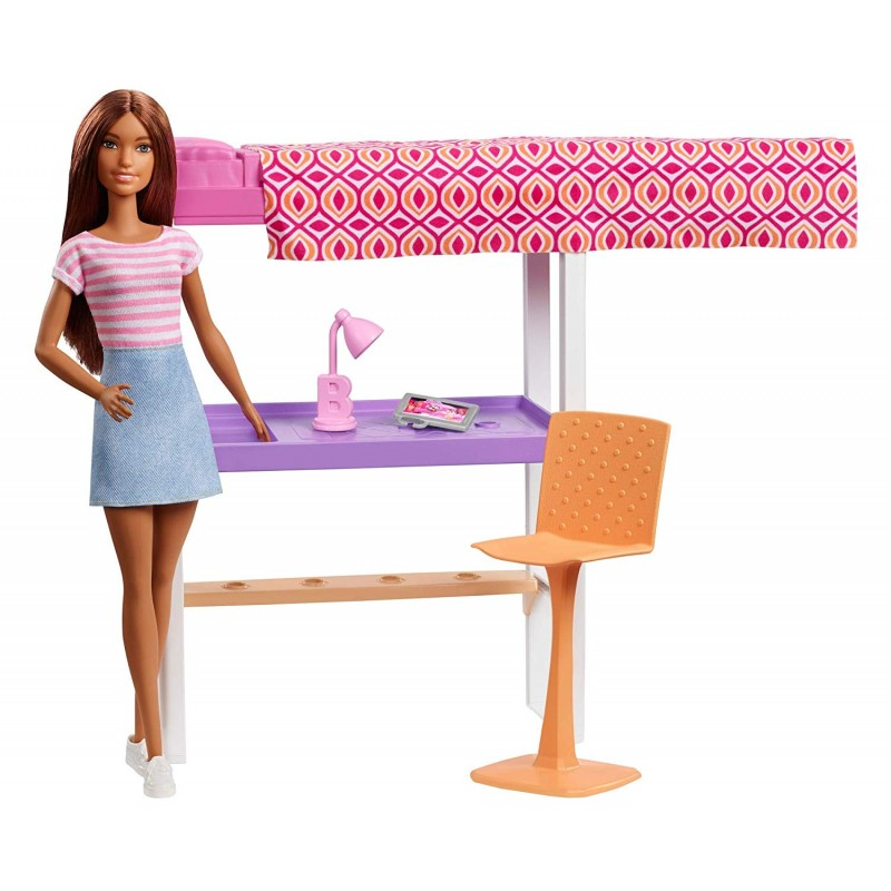 Ανακαλύψτε τη συλλογή με τα έπιπλα και τα σετ παιχνιδιού της Barbie®. Δημιουργούν μία ξεχωριστή ιστορία σε κάθε δωμάτιο. Αλλάξτε τη θέση των επίπλων ξανά και ξανά για να δημιουργήσετε νέα σκηνικά και αμέτρητες ιστορίες. Επιλέξτε ανάμεσα σε γραφείο με κρεβάτι, μπάνιο ή καθρέφτη κομμωτηρίου, το καθένα με τα δικά του έπιπλα και αξεσουάρ και μία Barbie με ρούχα που ταιριάζουν.