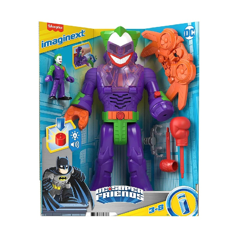 Με φώτα και ήχους, καθώς και 4 αξεσουάρ μάχης, το σετ Super Friends Insiders Joker εμπνέει τα παιδιά προσχολικής ηλικίας για περισσότερες ευφάνταστες ιστορίες δράσης.