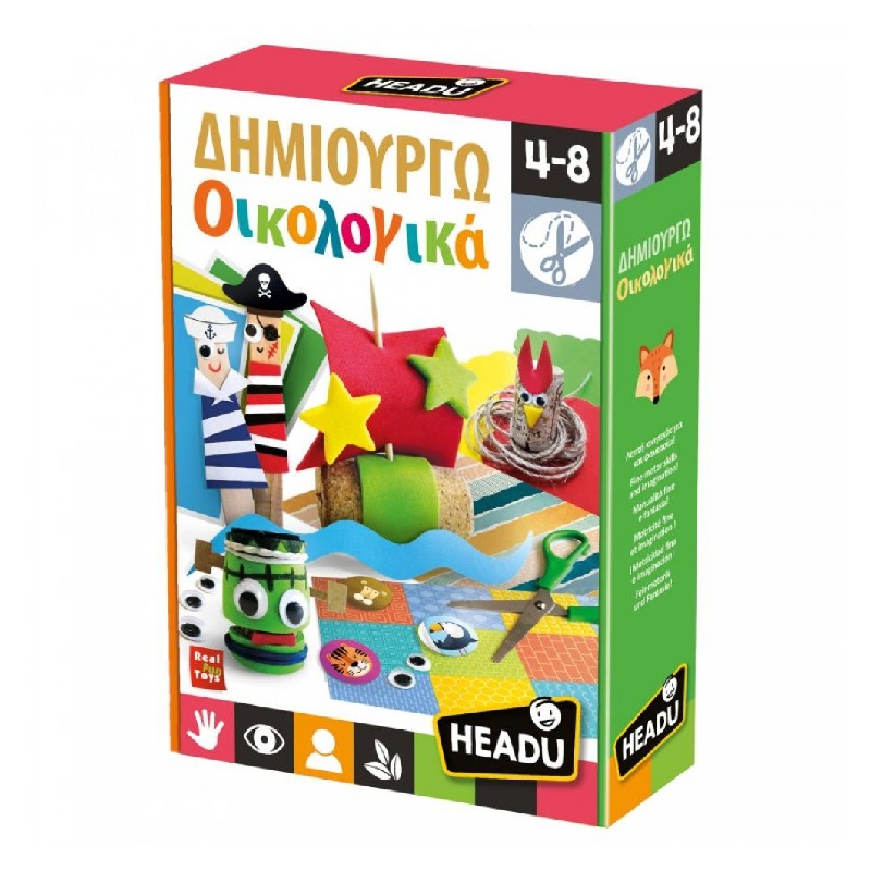 Περιλαμβάνονται: χρωματιστό χαρτόνι, 16 χρωματιστά μοτίβα, 2 πώματα από φελλό, 2 ξυλαράκια, αυτοκόλλητα αφρού, 2 πλαστικά καπάκια, κορδόνι 1 μέτρου, 10 αυτοκόλλητα πλαστικά μάτια, ψαλίδι, βάσεις από χαρτόνι.