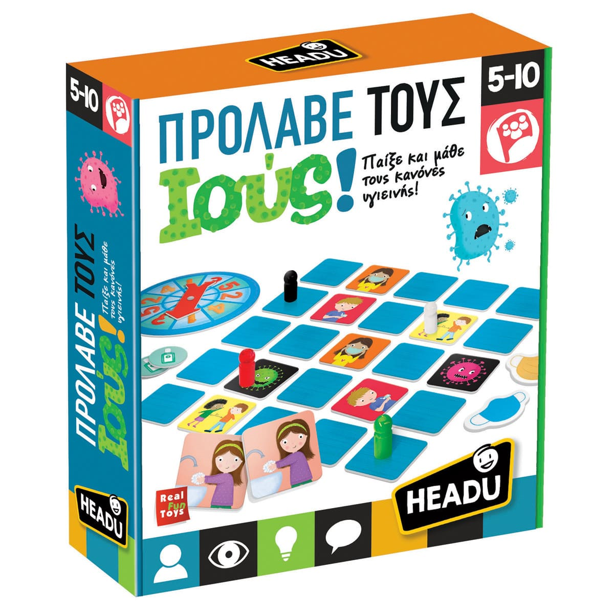 Ένα διασκεδαστικό παιχνίδι συνεργασίας, παρατήρησης, μνήμης και στρατηγικής, αφιερωμένο στους κανόνες συμπεριφοράς που πρέπει να τηρούμε για τον περιορισμό της μετάδοσης των ιών. Παίζουμε όλοι μαζί με στόχο να προστατεύσουμε το σύνολο... αλλά προσοχή στις κάρτες των ιών!