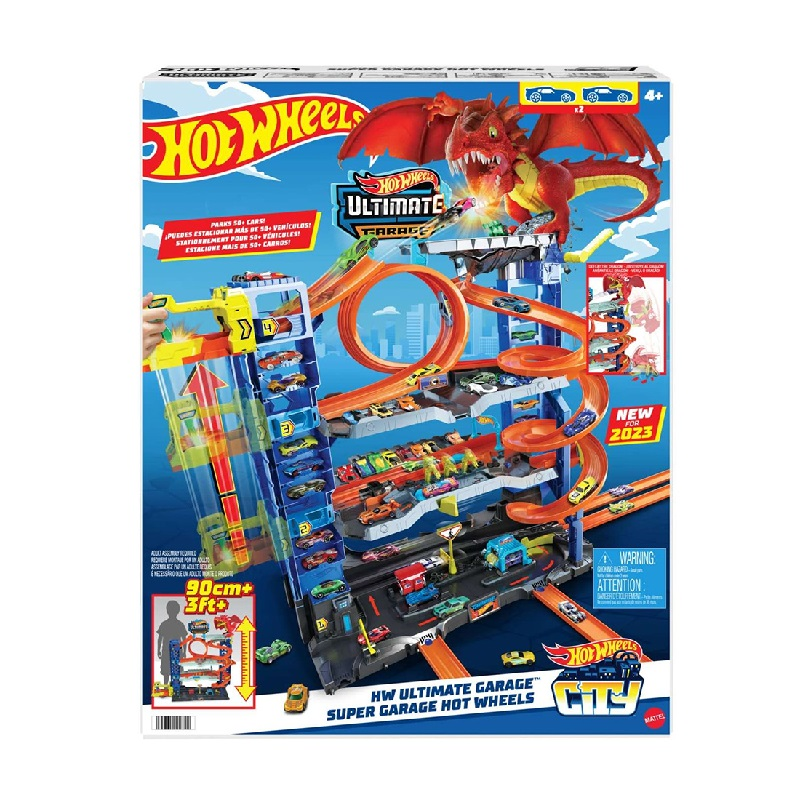 Το σετ συνοδεύεται από δύο οχήματα Hot Wheels και έχει αρκετό χώρο στάθμευσης για περισσότερα από 50 αυτοκίνητα κλίμακας 1:64.