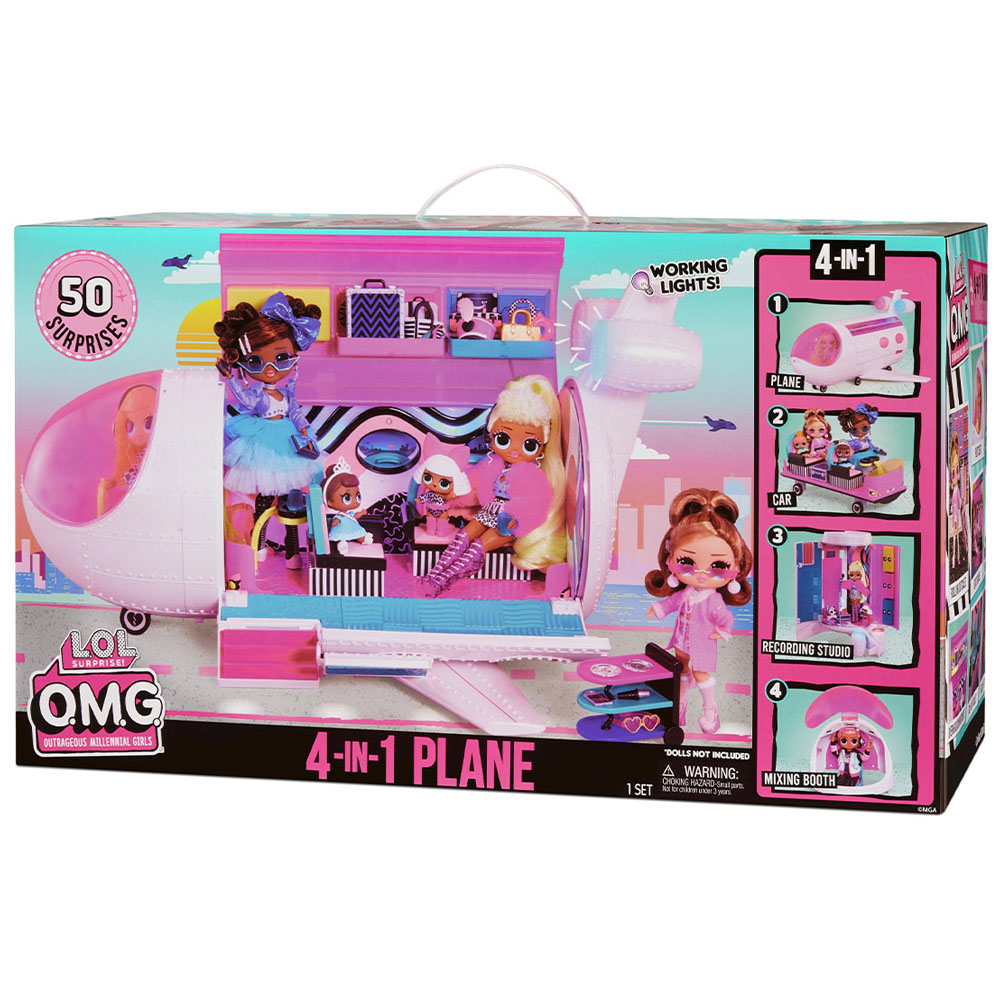 Ταξιδέψτε με στυλ στο νέο και ανανεωμένο αεροπλάνο των L.O.L Surprise OMG! Αυτό το 4 σε 1 παιχνίδι είναι αεροπλάνο, αυτοκίνητο, στούντιο ηχογράφησης και mixing booth. Ανακαλύψτε 50 διαφορετικές εκπλήξεις, όπως φώτα και ήχους, καλάθι φαγητού με πιάτα και κύπελλα, βαλίτσες με ροδάκια, ζώνες ασφαλείας και πολλά άλλα! Συμβατό με τις κούκλες LOL Surprise OMG (πωλούνται ξεχωριστά) και σε όλες τις άλλες κούκλες LOL Surprise (πωλούνται ξεχωριστά).