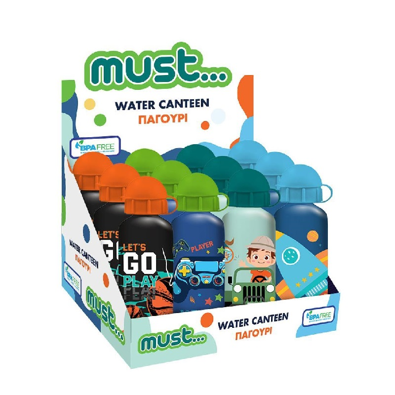 Παγούρι αλουμινίου Must, με εντυπωσιακά σχέδια, ιδανικό για το σχολείο, την παιδική χαρά, τις αθλητικές δραστηριότητες και τις καθημερινές βόλτες του παιδιού σας!