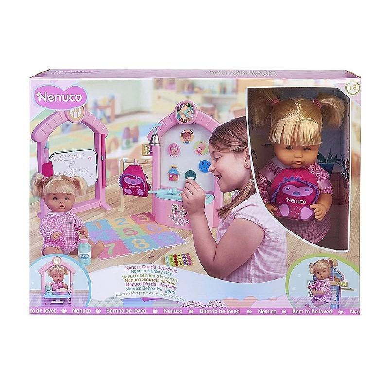 Σετ παιχνιδιού με κούκλα Nenuco 35 εκ με μαλλάκια και πάνω από 30 διαφορετικά αξεσουάρ, με θέμα τον Παιδικό Σταθμό.