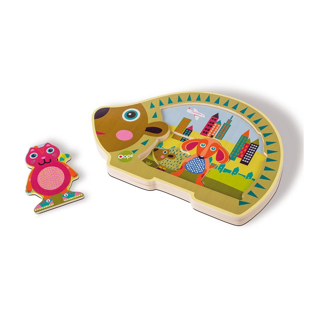 Το ξύλινο παζλ Oops Easy Puzzle είναι πολυεπίπεδο και δίνει την αίσθηση του βάθους στο μωρό! Μέσα στην κουκουβάγια είναι ζωγραφισμένοι και οι υπόλοιποι χαρακτήρες-ζωάκια της Oops με υπέροχα χρώματα! Με το παιχνίδι αυτό, το παιδί αναπτύσσει τη λογική σκέψη και μαθαίνει να χρησιμοποιεί τα χέρια του με περισσότερη δεξιότητα!