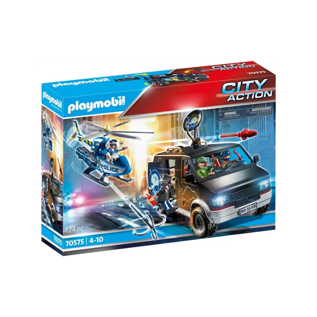 Αστυνομικό ελικόπτερο καταδίωξης της PLAYMOBIL! Απογειωθείτε και πιάστε τους ληστές που τρέχουν να ξεφύγουν με το βαν, με τον γάντζο του ελικοπτέρου!