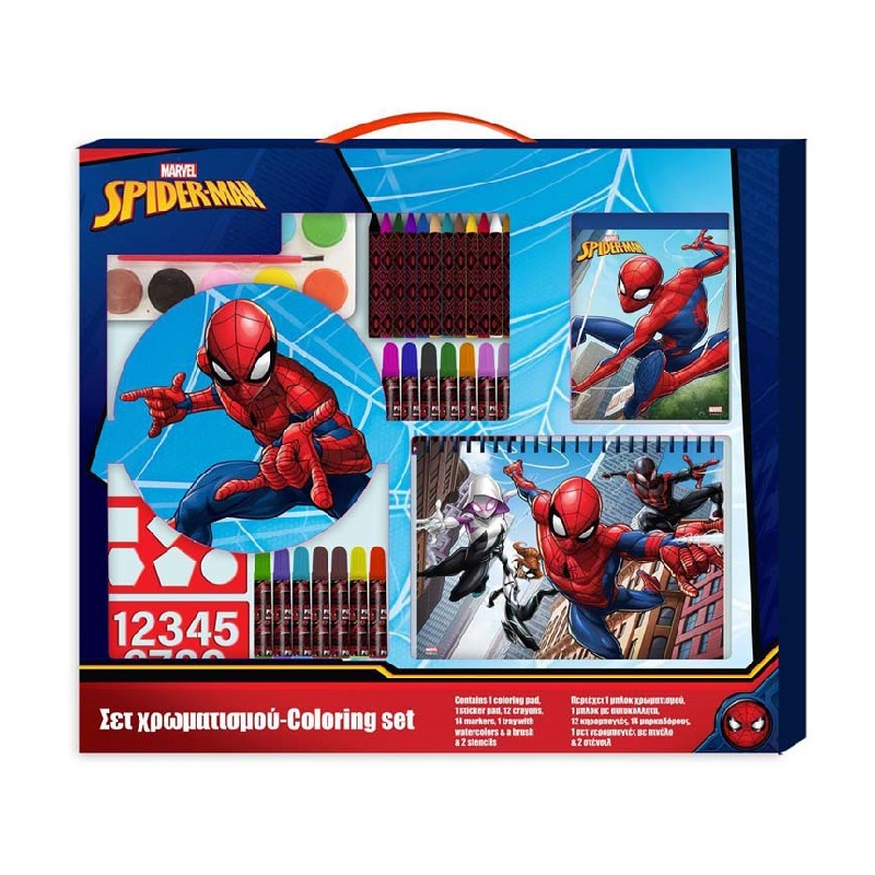 Σετ Χρωματισμού με τον Spiderman που περιέχει όλα όσα χρειάζεται κάθε παιδί για να δημιουργήσει εντυπωσιακές και φανταστικές ζωγραφιές!