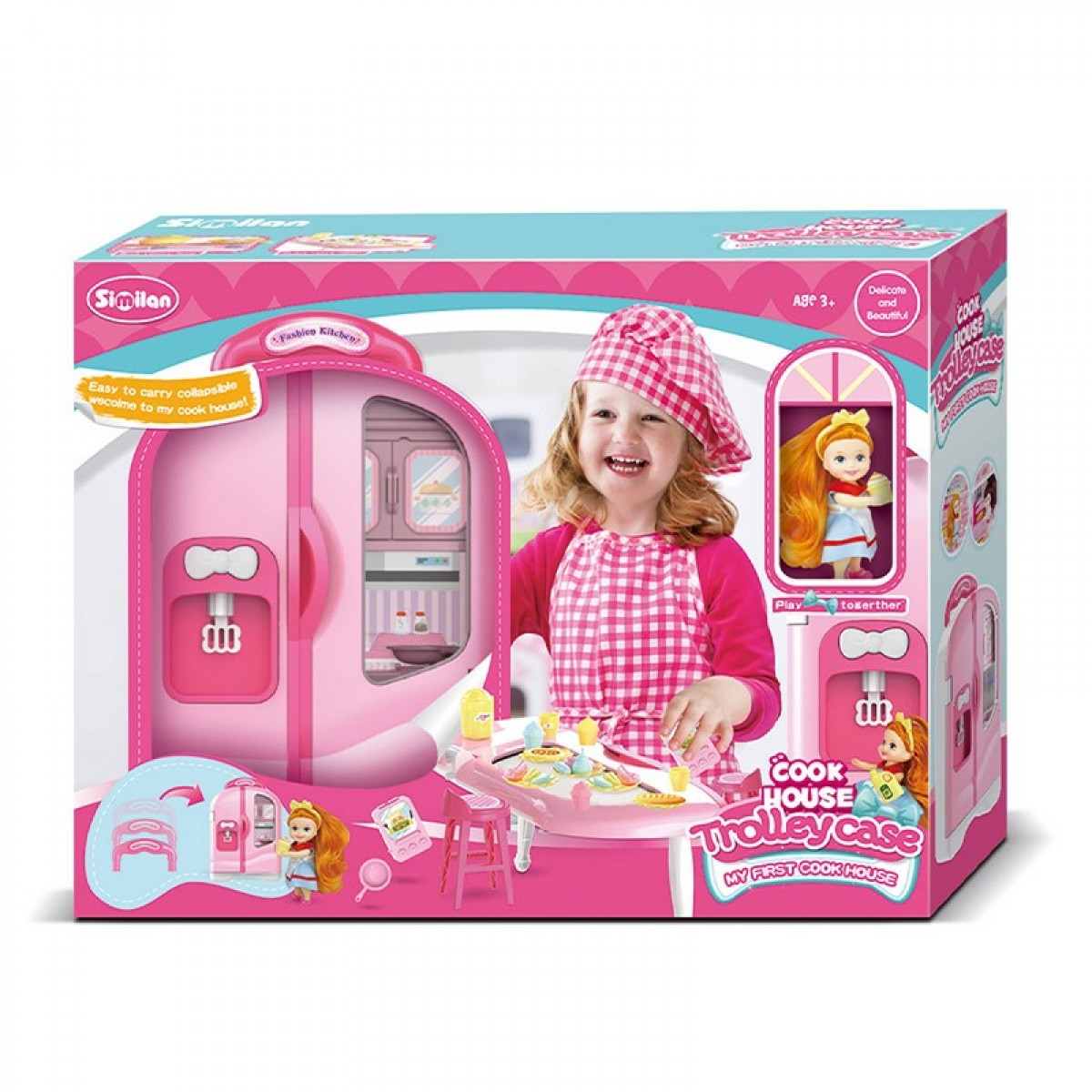 Λειτουργεί και ως trolley μεταφοράς με χειρολαβή, ώστε το μικρό σας να μπορεί να παίξει με τους φίλους του όπου επιθυμεί! Το ψυγείο μετατρέπεται σε κουζίνα με πολλά αξεσουάρ, για να μπορεί να παίξει με τη φιγούρα που περιλαμβάνεται στη συσκευασία.