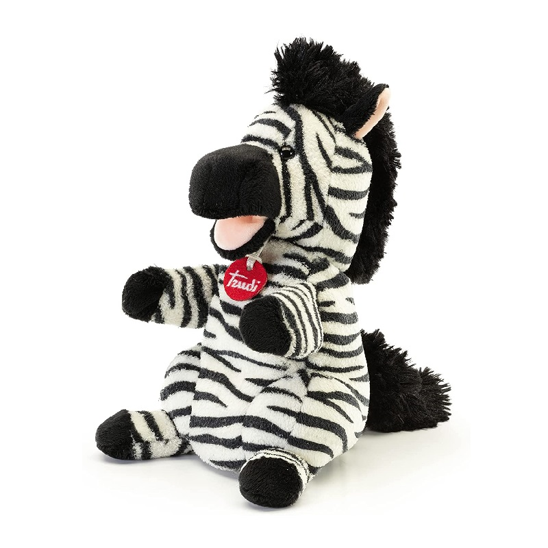 Λούτρινη μαριονέτα με τη μορφή μιας ζέβρας, η οποία είναι κατασκευασμένη από πολύ απαλά υλικά με ζωντανά και ρεαλιστικά χρώματα.